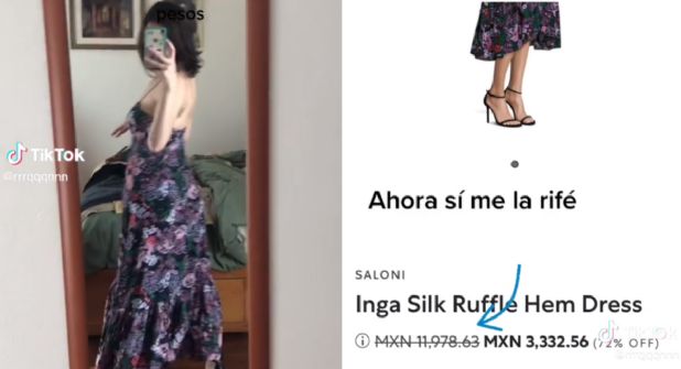 Una usuaria de TikTok identificada como Regina (@rrrqqqnnn), dio a conocer su afortunado hallazgo, pues al comprar el lujoso vestido en 250 se le hizo algo caso, sin embargo decidió revisarlo en internet, donde descubrió que el precio original era de varios miles.