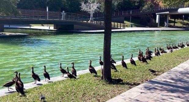Como un regalo de la naturaleza, aterrizan patos silbadores en Paseo Santa Lucía, lugar turístico que se encuentra en la ciudad de Monterrey, Nuevo León