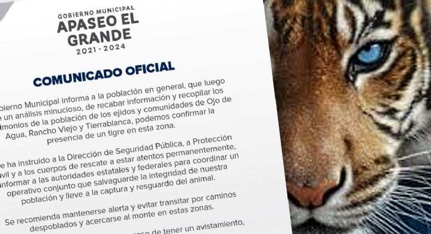 Lo anterior fue confirmado por el presidente municipal, José Luis Oliveros, quien mediante un vídeo de advertencia que fue publicado en las redes sociales oficiales del municipio, alertan a la población y se le hace la invitación a tomar precauciones, así como llamar de inmediato al 911 en caso de ver al felino.