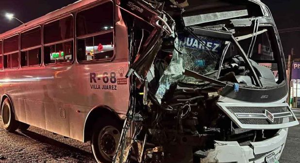 En el municipio de Guadalupe se dio el accidente entre dos camiones urbanos la noche del lunes sobre la Carretera a Reynosa.