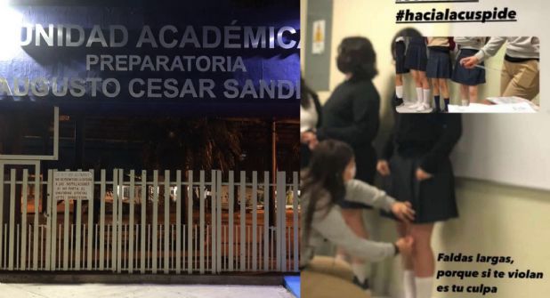 Se trata de la preparatoria César Augusto Sandino, en Culiacán, Sinaloa, donde las estudiantes de tercer año denunciaron el acutar de su directora, María Guadalupe Castro Díaz, quien además de medir sus faldas, les hizo firmar un documento donde las hacía responsables por sufrir cualquier tipo de violencia, abuso o incluso si eran víctimas de feminicidio.