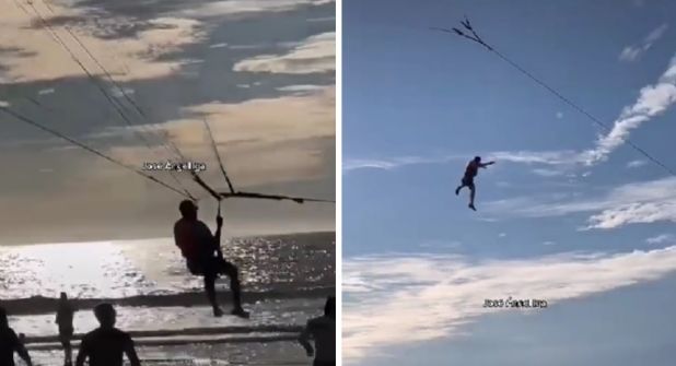 Mediante las redes sociales circula el video de un hombre que cayó de un parapente cuando este levantaba el vuelo, en las playas de Sinaloa. El momento fue captado y fue publicado en redes sociales por uno de los testigos.