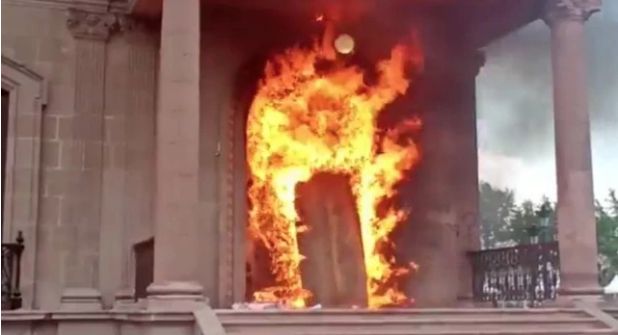 Las autoras de la manifestación han sido diversos colectivos feministas, quien entre reclamos, pancartas y gritos que claman justicia han incendiado las puertas del edificio gubernamental, ante los hechos los presentes documentaron e momento mediante fotografías y videos donde se puede apreciar la puerta principal de dicho edificio en llamas.