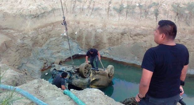Un trabajador drenaba un colector de agua ubicado a la orilla de la Carretera a Laredo, cuando realizó el terrible hallazgo. En el fondo del estanque se encontraba el auto con placas de Texas, mismo que al ser removido por la grúa se localizaron tres cuerpos en estado de descomposición.