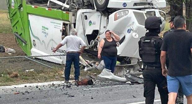 La volcadura del camión de limpia pública estará bajo investigación de los peritos viales para deslindar responsabilidades del lamentable hecho.