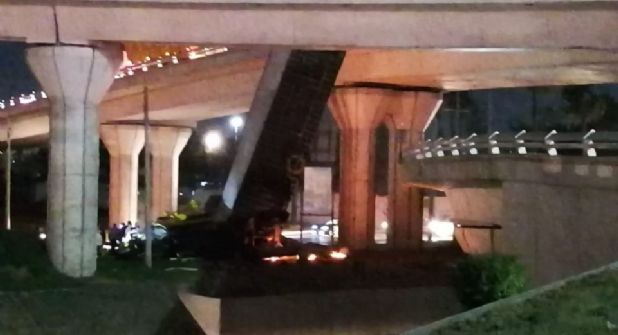 Durante la madrugada en la avenida Manuel L. Barragán en el municipio de San Nicolás de los Garza, Nuevo León, donde un trailero perdió la vida, luego de que la unidad pesada en la que viajaba chocara contra un barandal de protección. La cabina cayó a una jardinera, mientras que la caja, que transportaba tarimas quedó suspendida.