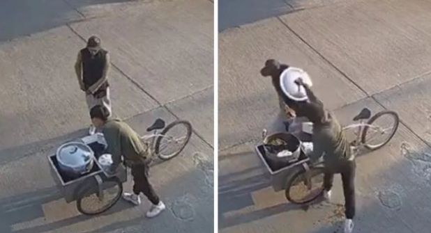 El hecho ocurrió en León, Guanajuato,en la colonia Real Providencia, donde un joven se encontraba vendiendo sus tamales sobre el clásico triciclo en las vialidades de la ciudad. A través de una cámara de seguridad se muestra al vendedor, quien ve acercarse a un hombre, evidentemente sospechoso.