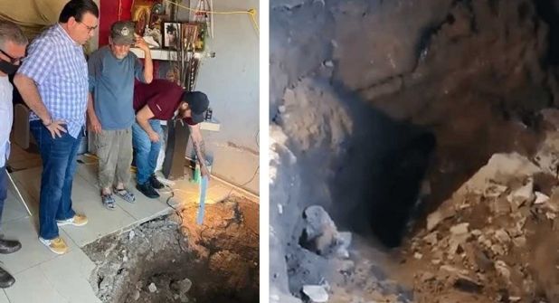Mientras, el socavón en la sala de la casa de SInaloa causó grandes destrozos dentro de la propiedad.