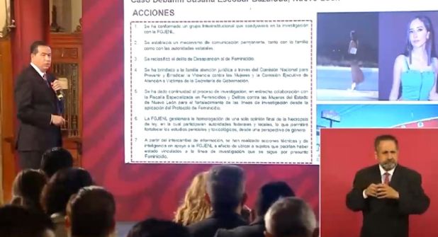 Gobierno Federal investiga a hombres vinculados a caso Debanhi. Fue el subsecretario de Seguridad Pública de Protección Ciudadana quien dijo que se reclasificó el delito de Desaparición por el Feminicidio.