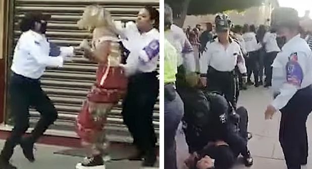 En un video, que circula en redes sociales, se observa como una joven intenta patear a una oficial lo que provoca la ira del par de uniformadas quienes a base de puñetazos la derrumbaron en el suelo.