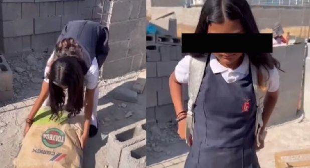 Mediante un video subido al Tik Tok de la menor, el papá pone a mover a su retoño grandes bultos de cemento, los cargados por él mismo durante su jornada laboral como albañil.