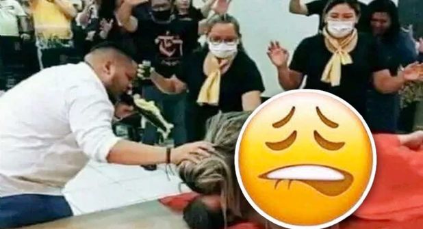 El arriesgado acto fue dirigido por el Pastor en pleno culto evangélico y frente a todos los asistentes quienes fueron testigos del momento en que la mujer intentaba concebir con la bendición de Dios.