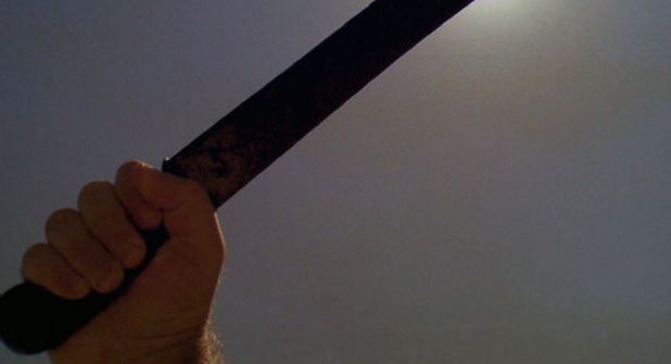 La secuencia muestra a un hombre que toma un machete de su vehículo y comienza un enfrentamiento. Durante el altercado se observa que uno de los asaltantes disparó contra el hombre en al menos tres ocasiones, sin que aparentemente resultara herido.