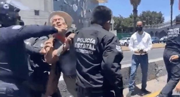Policías estatales reprimieron con golpes una protesta pacífica en la ciudad de Querétaro que marchaba para demostrar su inconformidad por la cesión del manejo de agua potable de parte del gobernador a una empresa privada.