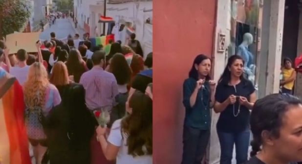 El video viral, se grabó en una pequeña marcha en las calles de un poblado, donde la mayoría de los asistentes son jóvenes, de los cuales algunos tienen pancartas y otros las banderas multicolor que siempre despliega con orgullo.
