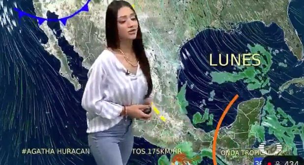 La joven empezó la descripción de cómo será el clima de manera normal haciendo énfasis del paso de Huracán Agatha y su paso por el sur del país.