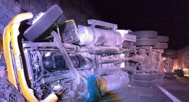 En el tramo conocido como Los Chorros, en el kilómetro 231 con dirección a Arteaga Coahuila, un tráiler volcó, la cabina se aplastó y el operador murió.