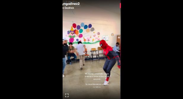Una maestra vestida de Spider Man enseña a sus alumnos a bailar cumbia y la verdad es que lo hacen bastante bien. El video se ha viralizado en TikTok.