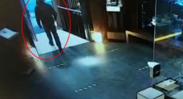 La cámara capta cómo en breve se ve a Omar salir corriendo con la misma bolsa que momentos antes había ingresado, donde se supone estaba el arma detonada esa noche.
