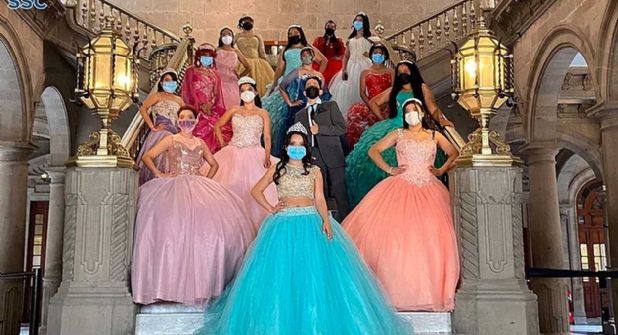 El festejo fue llamado “Sueños de Quinceañeras” se llevó a cabo con la aportación de donadores y comerciantes que obsequiaron los vestidos, zapatos, trajes, accesorios, maquillaje y peinado a las 16 chicas y el joven.