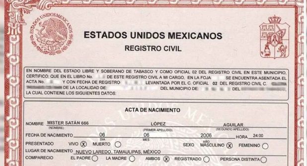 Todas las personas que nacemos en México tenemos el derecho de ser registrados ante la instancia del Registro Civil de lo contrario no hay constancia de la existencia del menor. Cuando los padres acuden a registrar a su hijo la mayoría aprovecha para exaltar el nombre de algún pariente, actor o cantante y hasta de músicos, incluso se han registrado nombres de personajes de ficción.