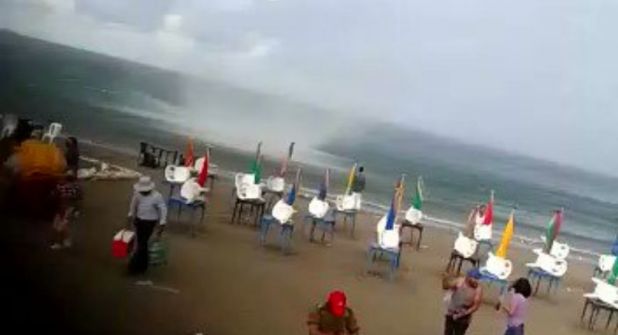 Los bañistas y comerciantes corrieron para ponerse a salvo, mientras otros más valientes grababan con sus celulares el fenómeno.