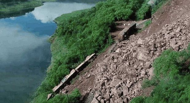 Fotografías subidas por usuarios a las redes sociales mostraron cómo las enormes rocas y toneladas de tierra cayeron sobre las vías por el desgajamiento de un cerro. Algunas golpearon el tren y lo arrojaron al fondo de una barranca.