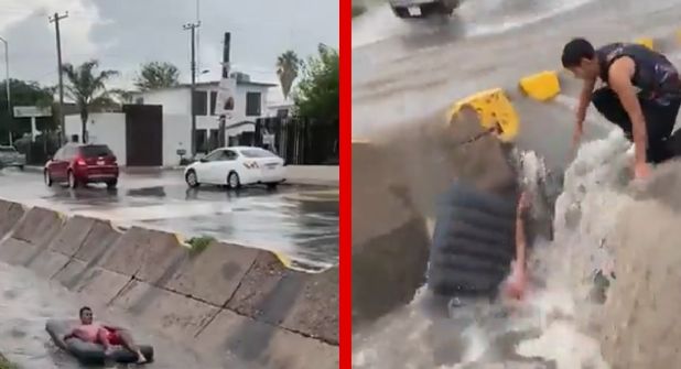 En redes sociales ha estado circulando el video de un joven que pasea en un colchón inflable por un canal, aprovechando las lluvias que habían generado una corriente, sin embargo, su divertido paseo dio un giro inesperado.