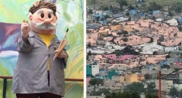 Algunas casas en el municipio de Ecatepec, Estado de México, fueron pintadas con colores como durazno, negro y blanco, formando a lo lejos la figura fácilmente distinguible del Dr Simi, la mascota oficial de las Farmacias Similares, populares por ofrecer productos iguales a los de patente a precios más bajos.