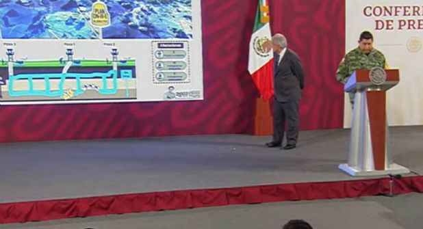 El subsecretario menciona que desde el momento en que recibieron el reporte, la Sedena puso en marcha el Plan DN-III-E trasladando alrededor de noventa y cinco militares, quince vehículos, dos ambulancias, cuatro binomios caninos y los buzos.