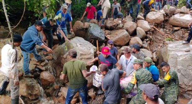 De acuerdo con las autoridades, eran tres hombres y una mujer quienes fueron sepultadas por una montaña de lodo y vegetación, arrastradas por la fuerte corriente ocasionada por las precipitaciones.