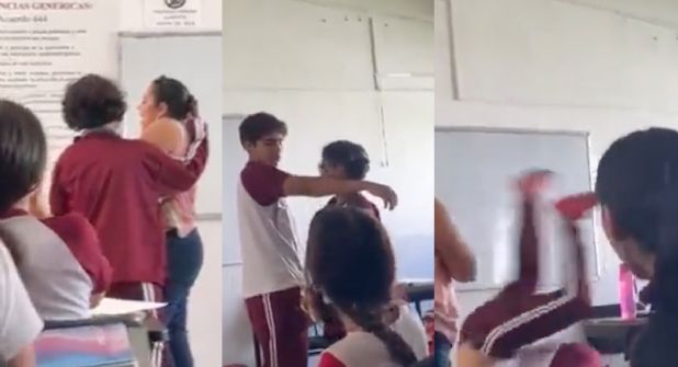 Ante las acciones de la profesora, uno de los alumnos se puso de pie para defender a la maestra, quien comenzó a grabar el momento para su defensa personal, no obstante la situación se salió de control cuando la alumna comenzó a agredir al alumno que defendía a su profesora.