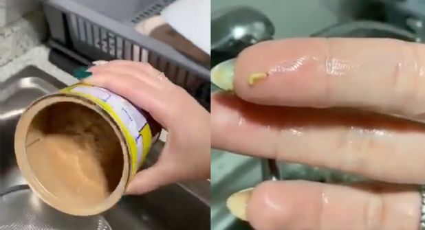 La mujer que grabó el video se animó a enjuagar con agua el contenido del colador para encontrar que efectivamente había un montón de gusanos de color verde que se retorcían ente el polvo.
