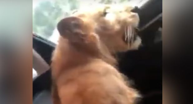 En las imágenes se aprecia cómo el conductor de la camioneta pasea cerca de una escuela, que luce desierta, mientras el león observa al exterior por la ventana y dentro del vehículo suena la canción "El Comando Suicida del Mayo", del grupo Los Buchones de Culiacán.