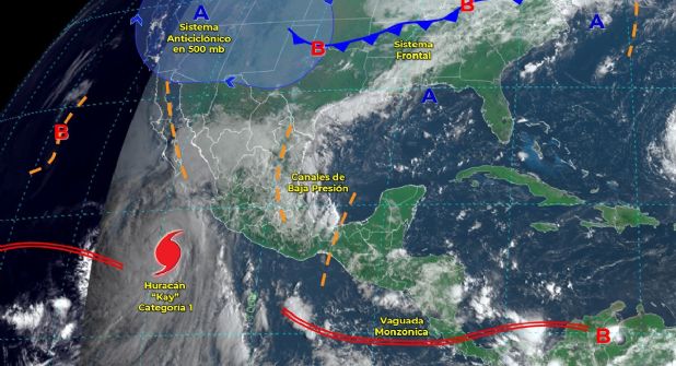 Además, debido al Huracán Kay, en Sonora, Chihuahua, Aguascalientes, Jalisco, Colima, Michoacán y Tabasco prevén precipitaciones fuertes de 25 a 50 mm.