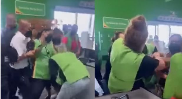Una de las cajeras que intentas separar la batalle grita “suéltala, suéltala”, sin embargo todo fue inútil, pues los golpes continúan.