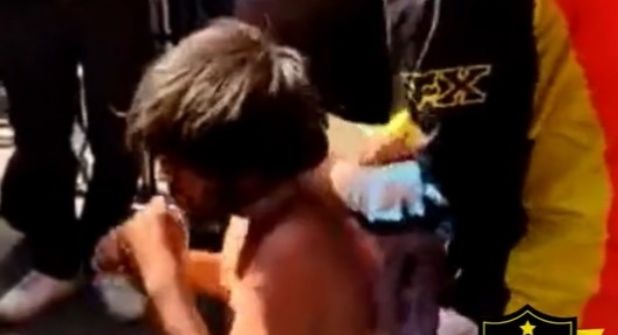 Tras ser detenido, la gente lo desnudó, lo golpearon, le pintaron la palabra "rata" en el cuerpo y además lo hicieron caminar por la calle.