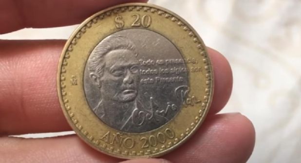 Se trata de la moneda de 20 pesos conmemorativa a la entrada del año 2000 y con la imagen del novelista Octavio Paz, acuñada por el Banco de México en ese año.