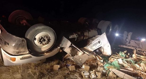Se dio a conocer que a esa altura, el operador del tráiler perdió el control de la unidad y se volcó. Se informó que llevaban una carga de cartón.