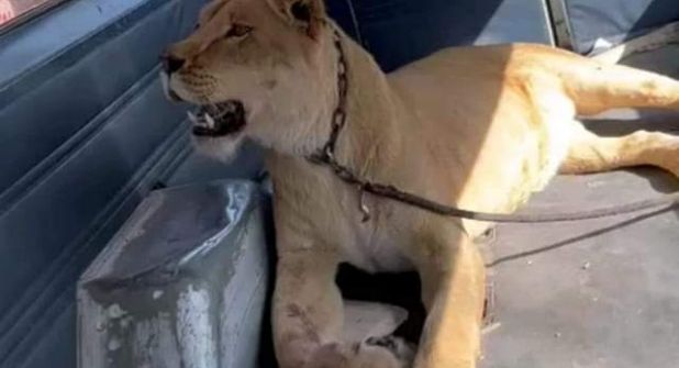 Representantes de la Procuraduría Estatal de Protección al Ambiente (PROESPA) llegaron para resguardar a la leona africana y después la llevaron al parque Rodolfo Landeros Gallegos.