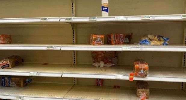 Los anaqueles de las tiendas lucen vacíos, luego de que este viernes se permitió volver a salir a las calles, pero la gente acudió a las tiendas y se atrincheró de nuevo en sus casas.
