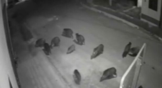 En el video que se viralizó en las redes sociales, se puede ver al menos 10 jabalíes transitando por la vía pública en medio de la noche.