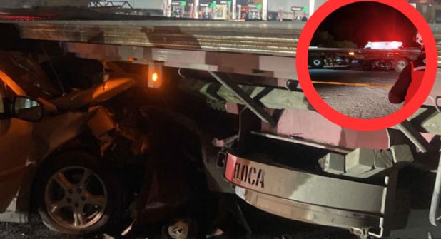 El tráiler se encontraba en la Carretera Nacional y trataba de incorporarse a los carriles cuando la camioneta se impactó de lleno debajo de éste.