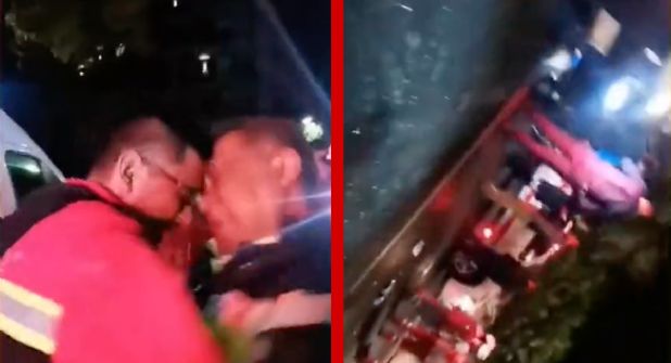 En un clip que circula por las redes sociales, se puede observar cómo al inicio, dos de los elementos de emergencias discuten por el robo del accesorio.