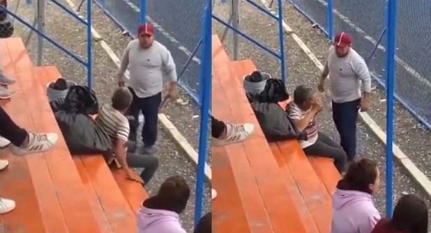 “Ya déjalo, déjalo”, dicen algunas mujeres que también miran el partido de futbol desde la zona de gradas, pero a pesar de que había más personas en el lugar, ninguna intervino en defensa del abuelo, simplemente se limitaron a gritarle al abusador que lo dejara.