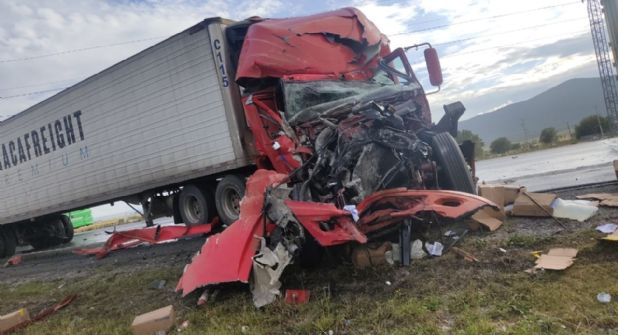 Dos tráileres participaron en un fuerte choque en la Carretera Federal 57 en el Ejido Puerto Grande, en Galeana, Nuevo León.