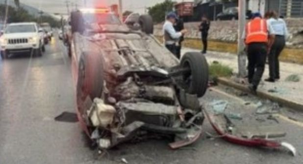 Está mañana se reportó un aparatoso accidente en Monterrey, dónde un automovilista volcó su auto sobre la avenida, dejando dos lesionados en el lugar.