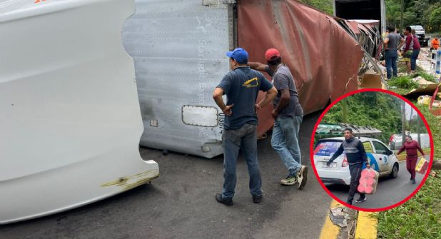 Destacó como incluso automovilistas paraban para echar en sus vehículos cajas enteras de la mercancía, esto sin que nadie auxiliara al conductor, herido y atrapado dentro de su unidad.