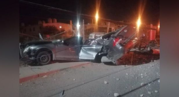 El periodista narraba los hechos, estaba frente al auto que se veía severamente dañado; sobre este, se aprecia el cuerpo de una persona cubierto con una sábana.