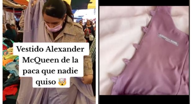 El video en TikTok se viralizó muy pronto luego de que la joven mostrara el momento en que de un montón de ropa saca el vestido largo en color lila pastel, por el que asegura pagó solamente 80 pesos. Ella descubrió que era una prenda del famoso diseñador Alexander McQueen, ya fallecido.